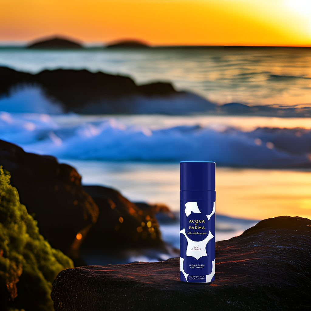 The Acqua Di Parma Blu Mediterraneo Fico Di Amalfi Body Lotion smells like a fresh, sophisticated blend of the Amalfi coast, with hints of sun-kissed cliffs and lush oils.