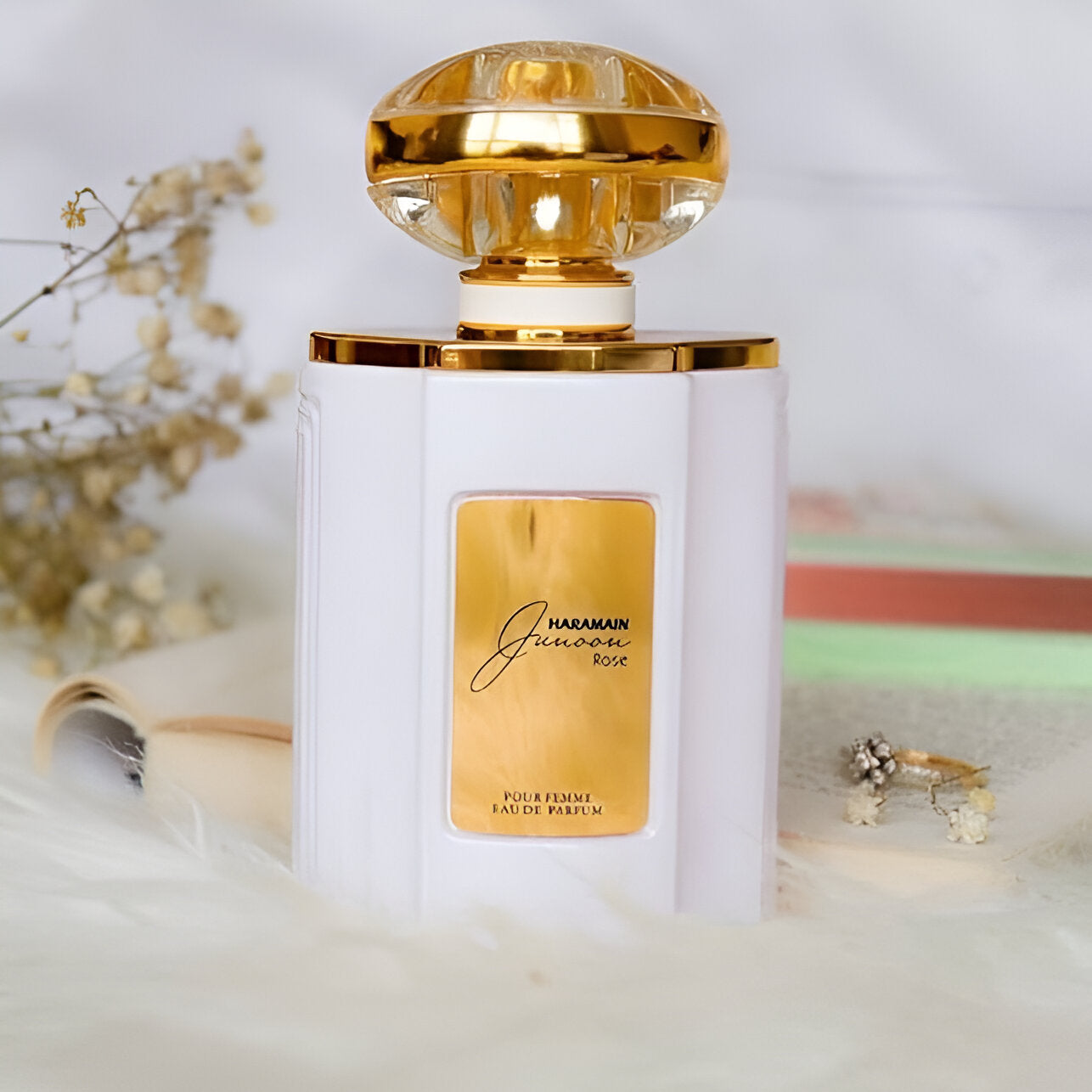 Experience Al Haramain Junoon Rose EDP: a modern, oriental floral perfume for unforgettable Fall & Spring nights.