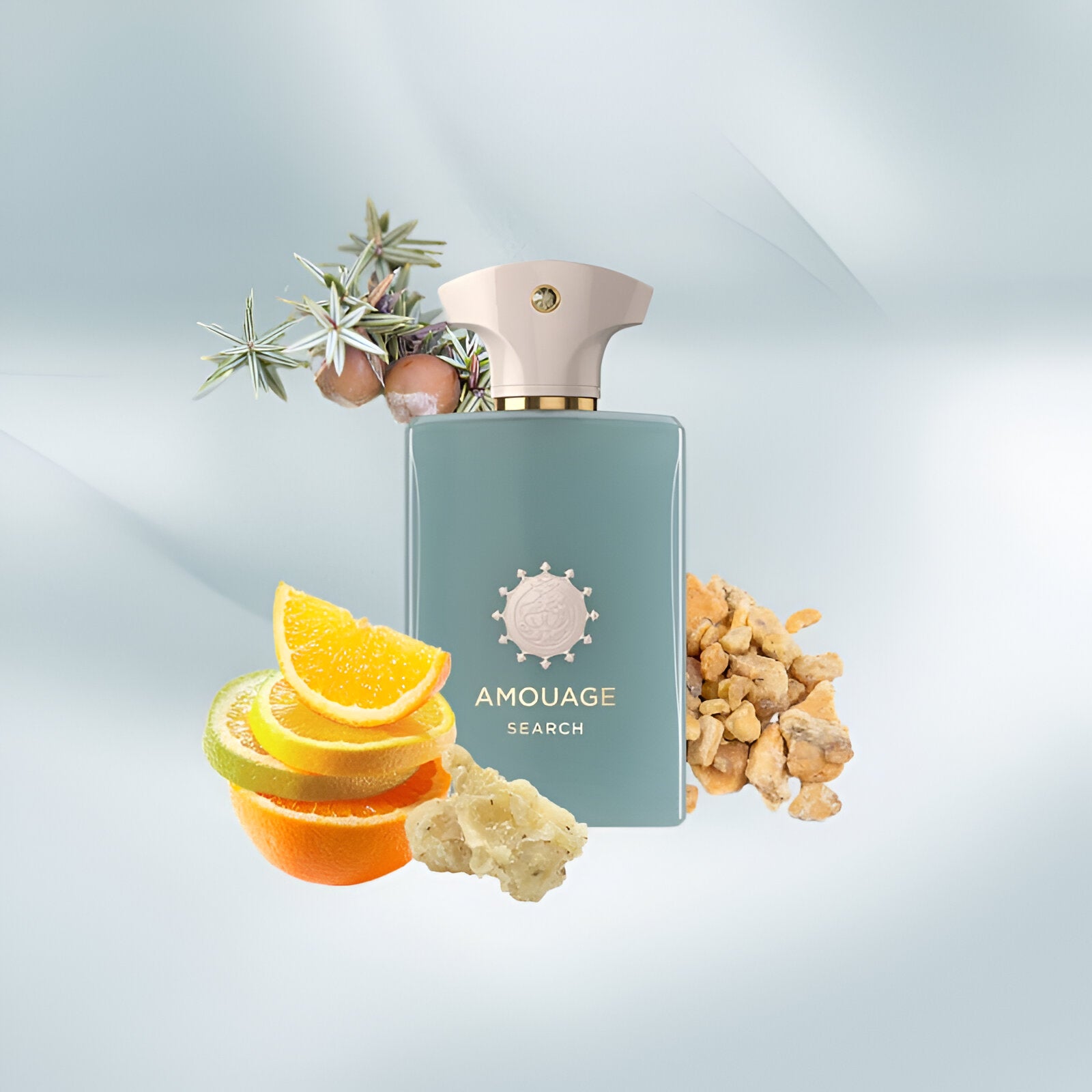 Experience Amouage Search EDP: a luxury scent blending citrus and woods, inspired by exploration and identity.