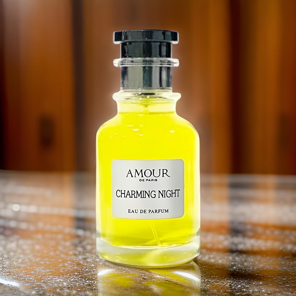 Amour De Paris Charming Night EDP: a captivating unisex fragrance with romantic florals and warm amber, perfect for day or night.