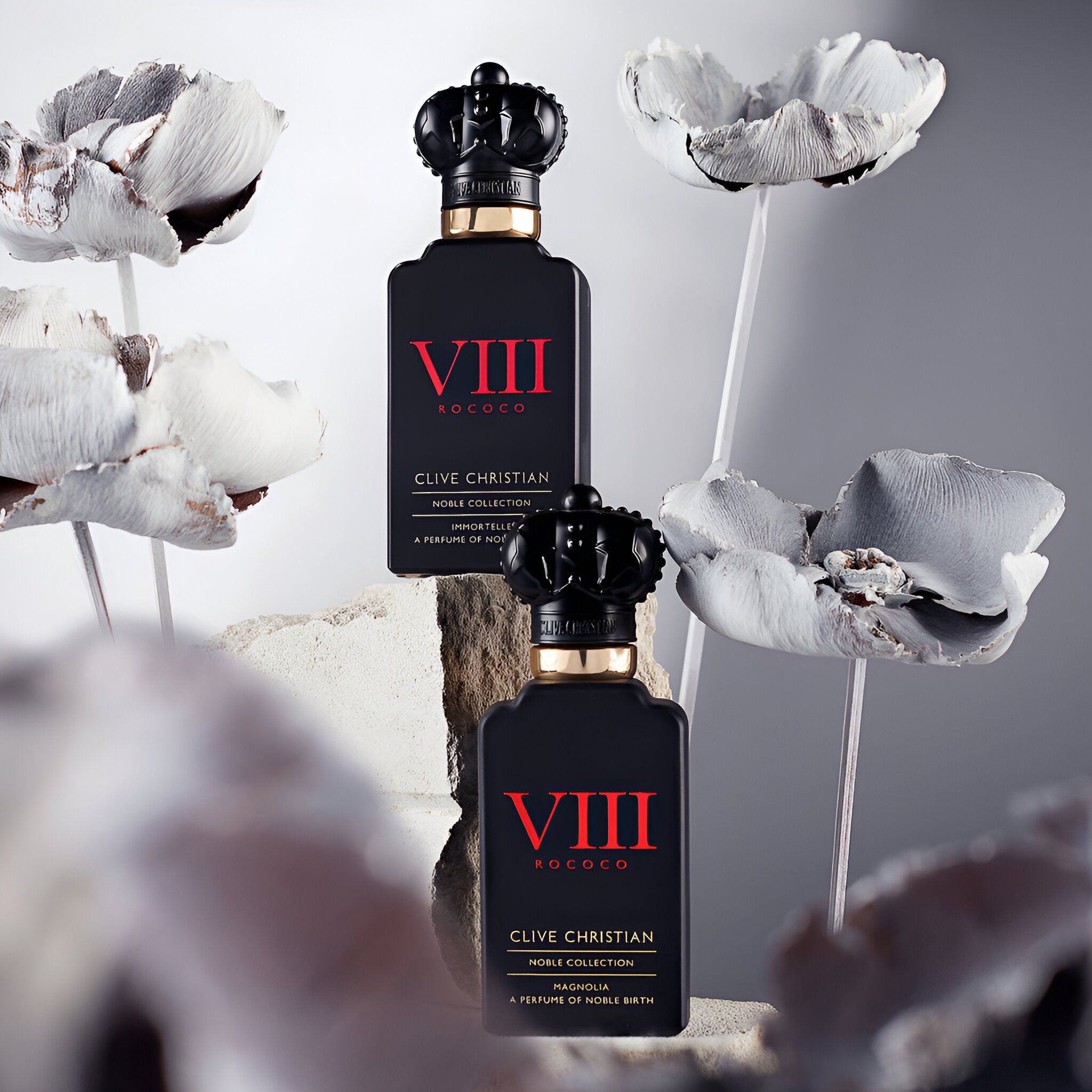 Experience the opulence of the Clive Christian Noble VIII Collection Rococo Magnolia Perfume, where magnolia elegance meets Rococo whimsy.