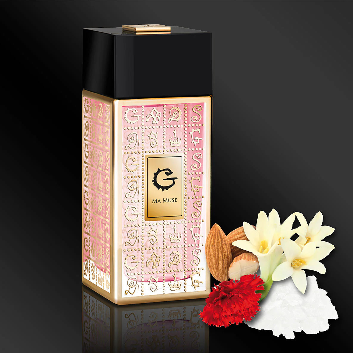 Ma Muse is an enchanting fragrance that distills a sweet scent of grace and perfection, embodying the adoration of a loved one. It teases the senses with delight, offering a radiant and warm trail that resonates like a promise of happiness.