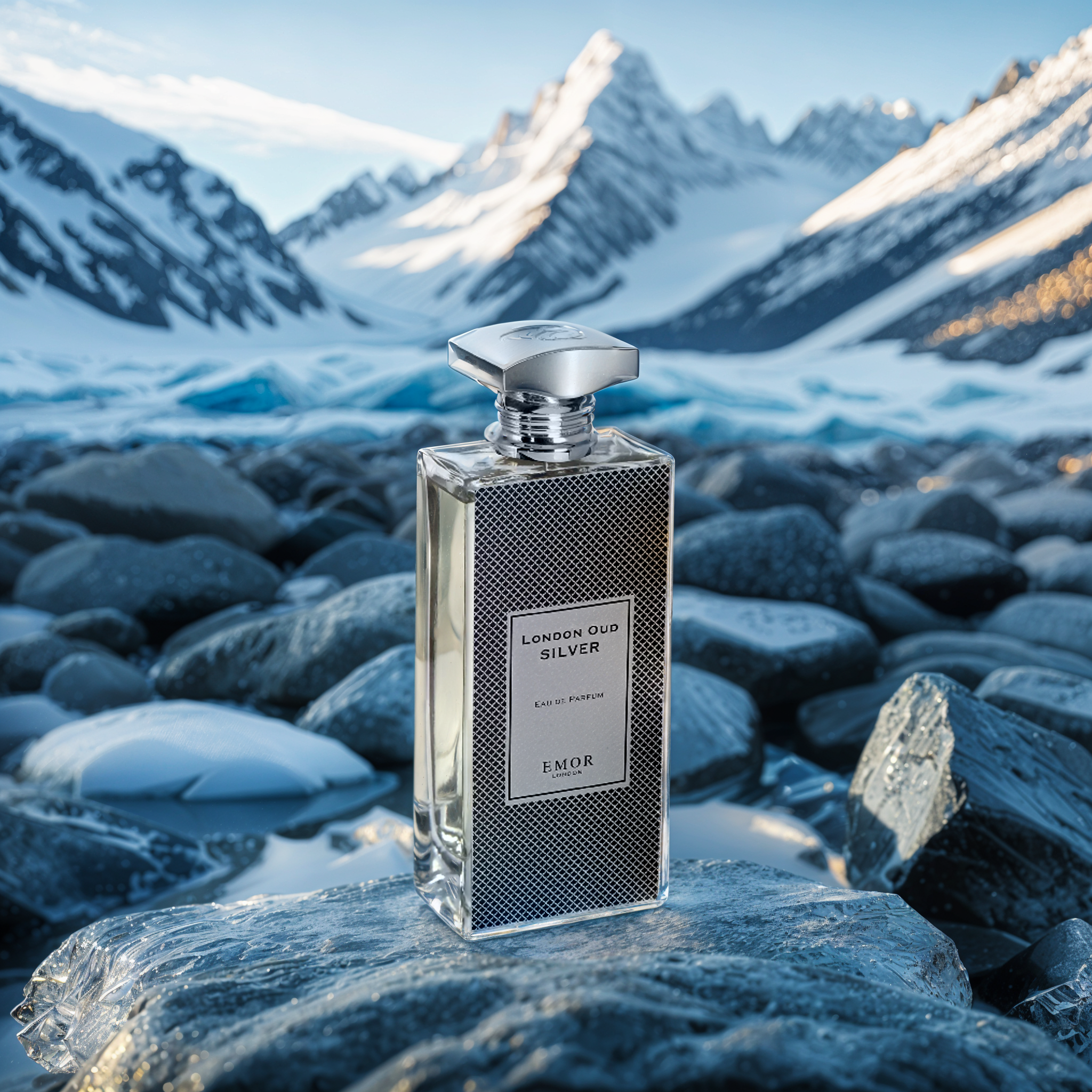 Embrace Emor London Oud Silver EDP's luxurious blend of woody citrus and cardamom for a seductive, memorable elegance.