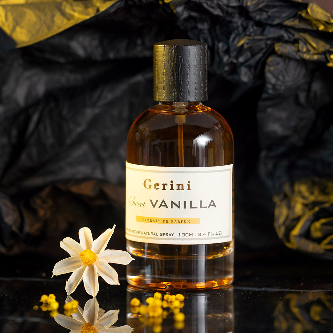 Gerini Sweet Vanilla Extrait de Parfum smells like a warm and enchanting blend of sweet vanilla, rich caramel, and delicate floral notes, evoking feelings of nostalgia and romance for both men and women.