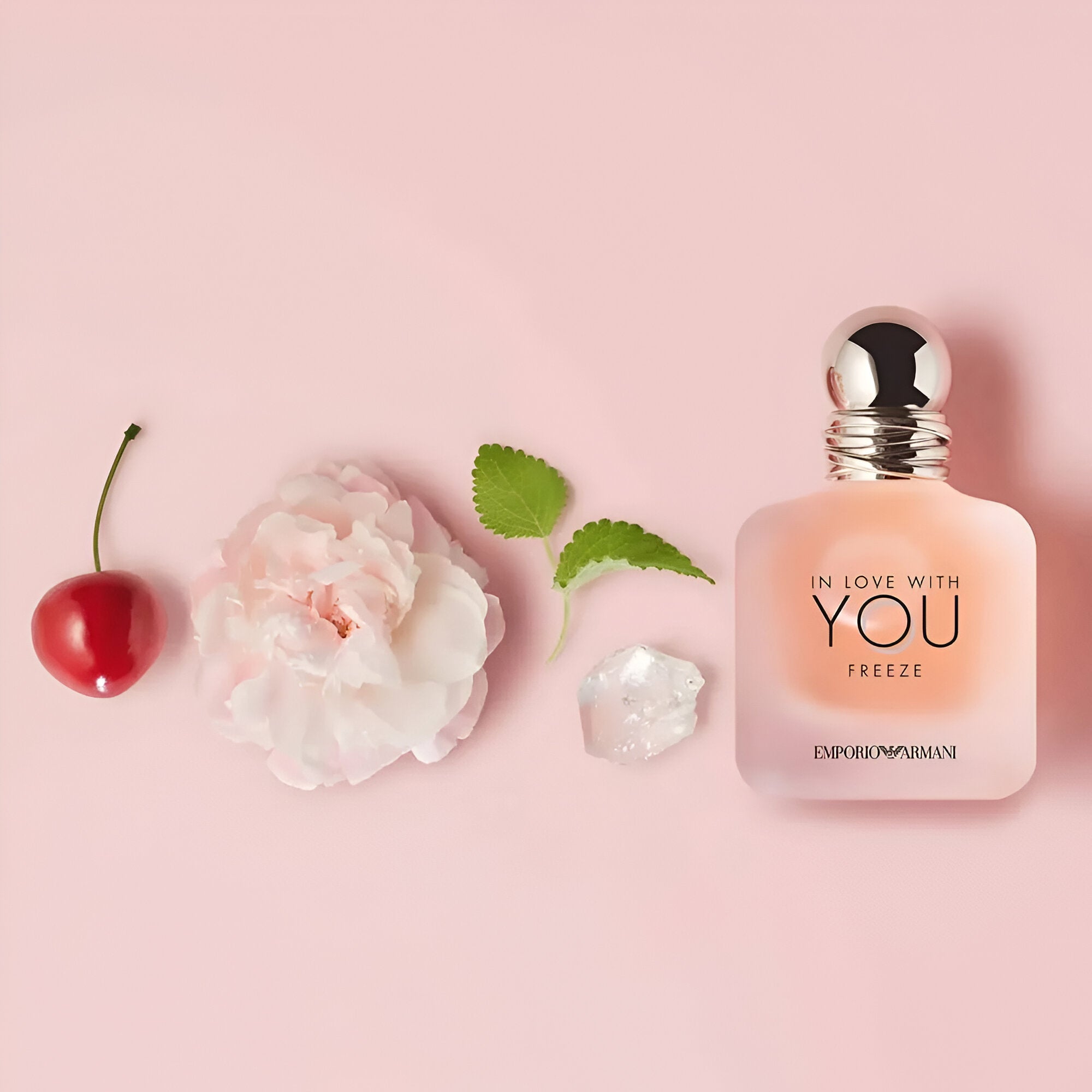 Giorgio Armani Emporio Armani In Love With You Freeze Pour Femme Mini EDP smells like a delightful mix of sparkling cherry, vibrant orange blossom, and sweet vanilla, creating a captivating and elegant fragrance that embodies love and joy.