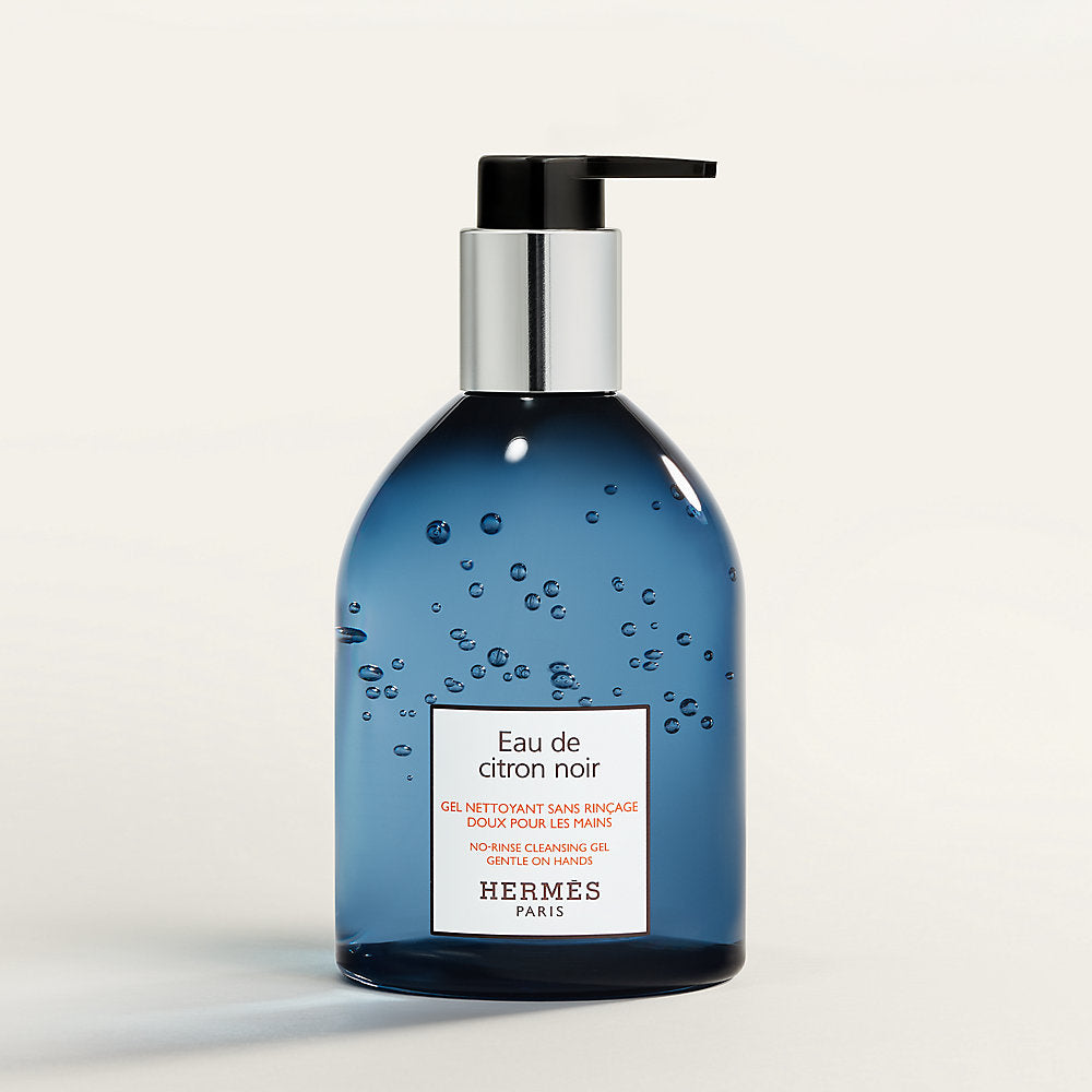 Indulge in the aromatic elegance of Hermès Eau De Citron Noir No-Rinse Hand Cleansing Gel.