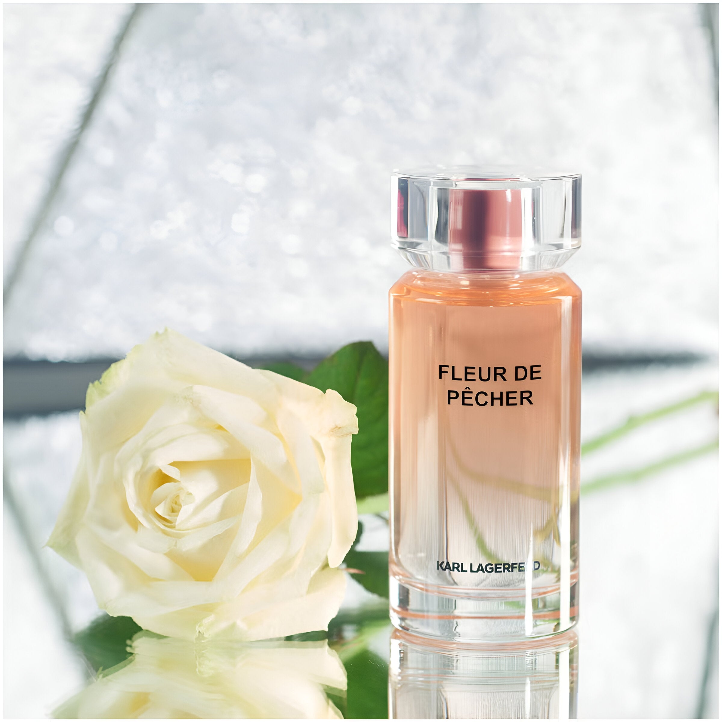 Karl Lagerfeld Fleur De Pecher EDP smells fresh and elegant, combining fruity notes of yuzu and pear with delicate peach blossoms and jasmine, all rounded out by a warm musk and wood base.
