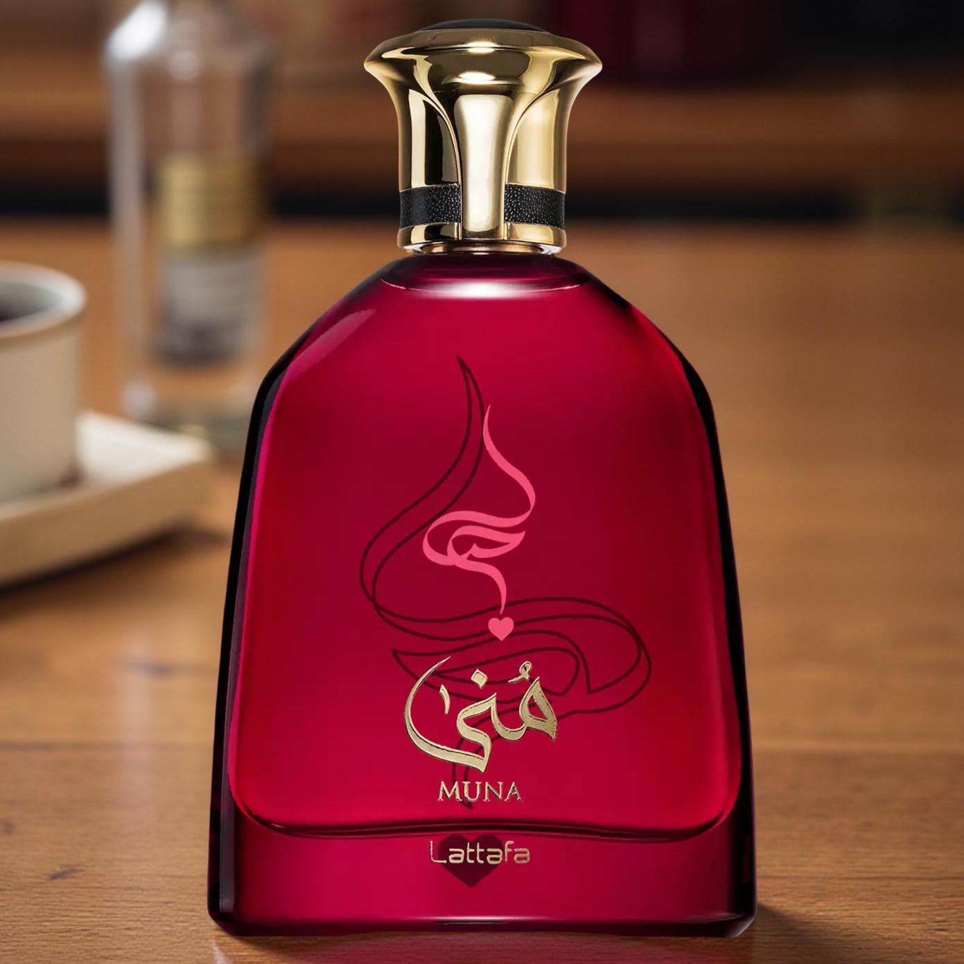 Lattafa Muna Eau De Parfum features top notes of watermelon and strawberry, floral middle notes, and a musky, woody base.