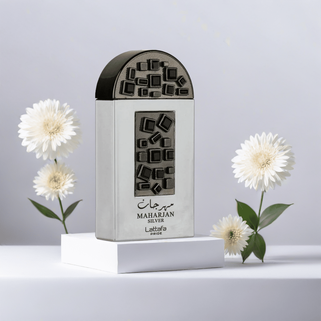 Discover Lattafa Pride Maharjan Silver EDP: A luxe blend of tradition and modernity with notes of champagne, musk, rose, and patchouli.