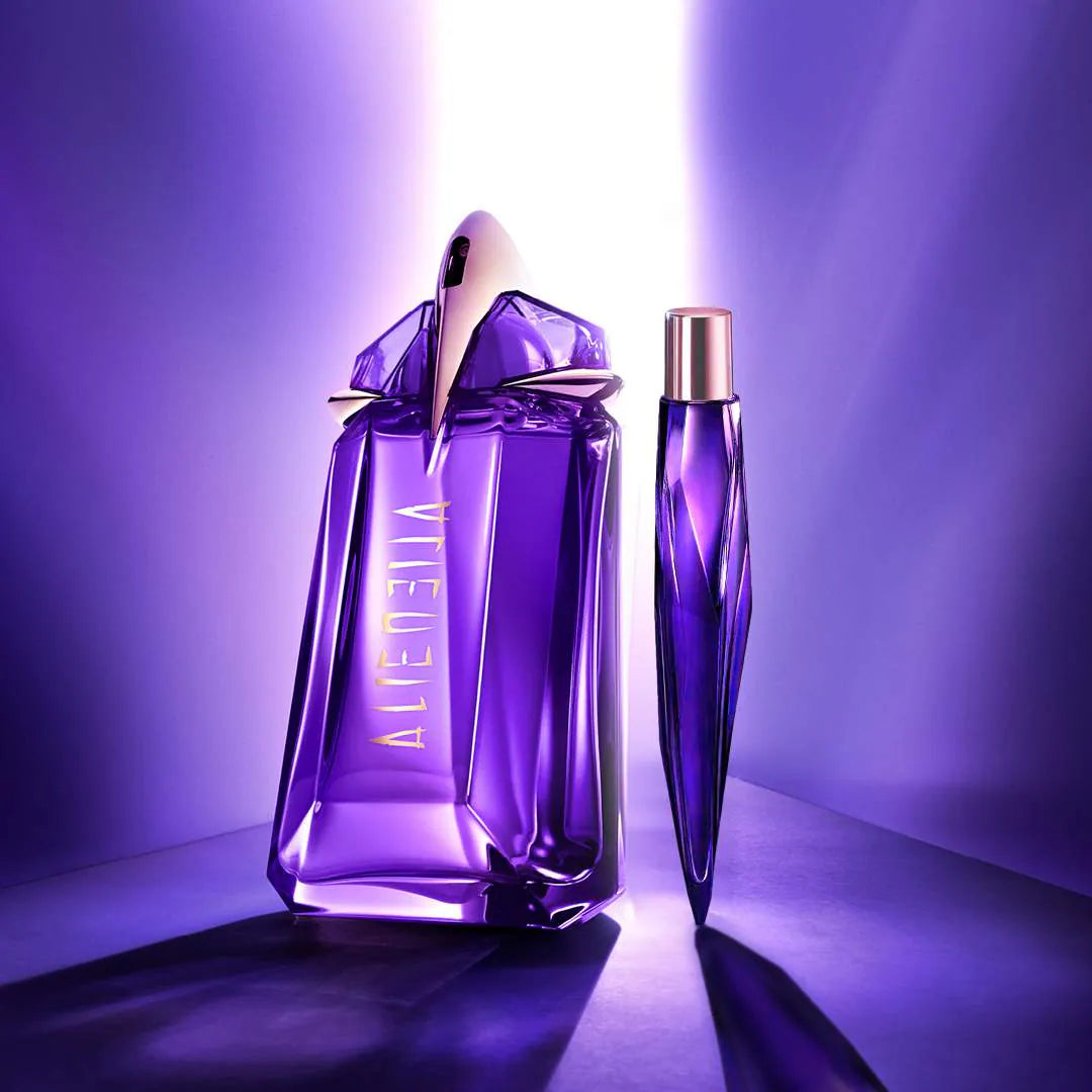 Immerse in the celestial charm of the Mugler Alien Eau De Parfum Travel Refill Set, celebrating modern women with mystery and elegance, perfect for gifting or travel.