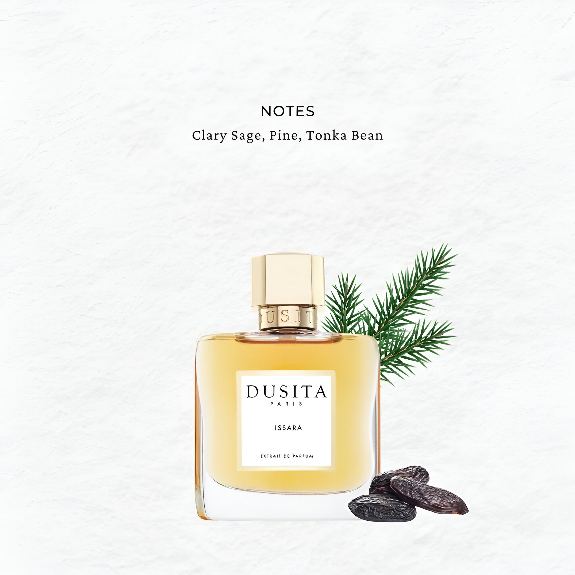 Immerse in nature's essence with Parfums Dusita Issara, featuring sylvester pine, clary sage, and crafted by master perfumer Pissara Umavijani.