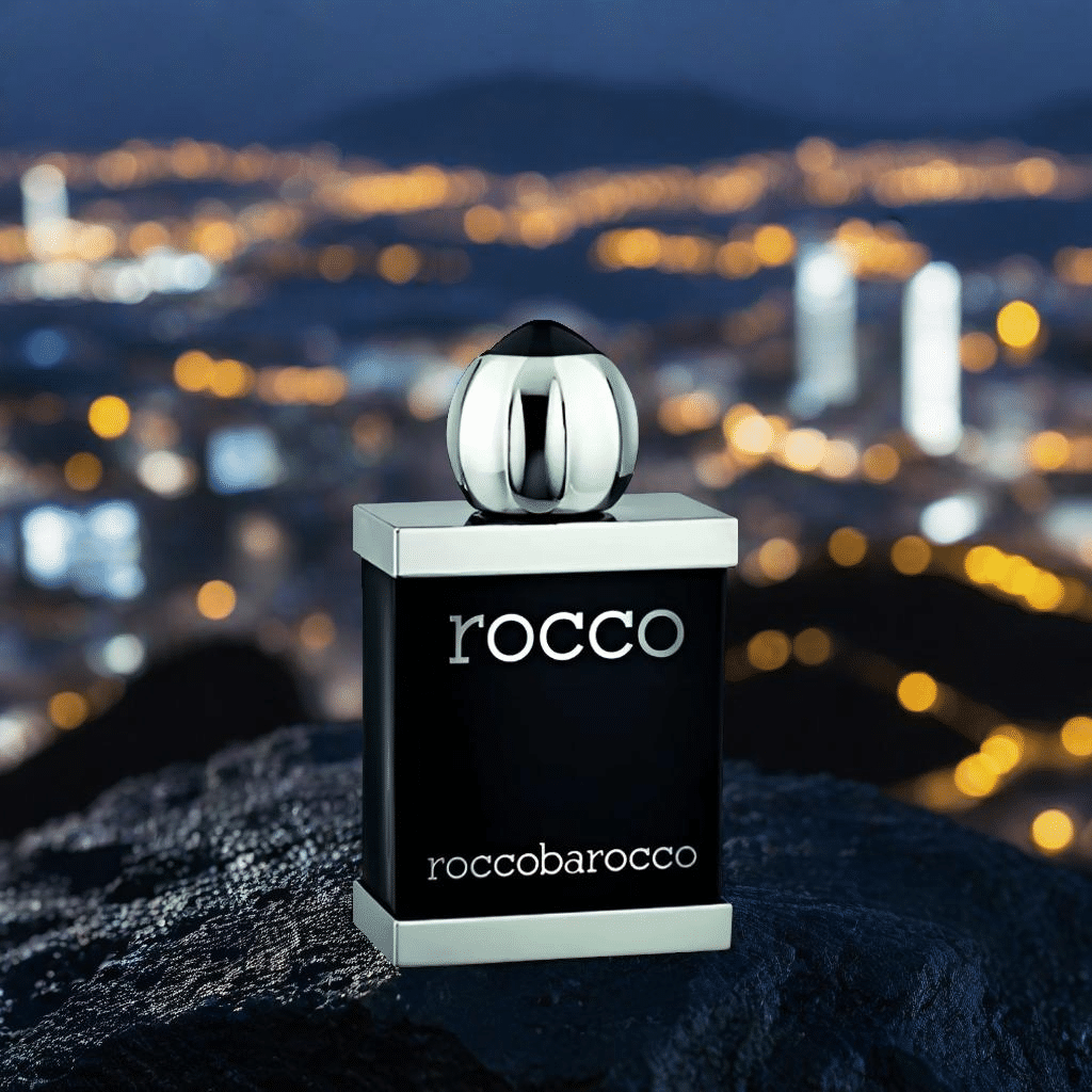 Rocco Black by Roccobarocco: a luxurious, long-lasting Eau de Toilette with citrusy-spicy notes, perfect for the modern, sophisticated man.