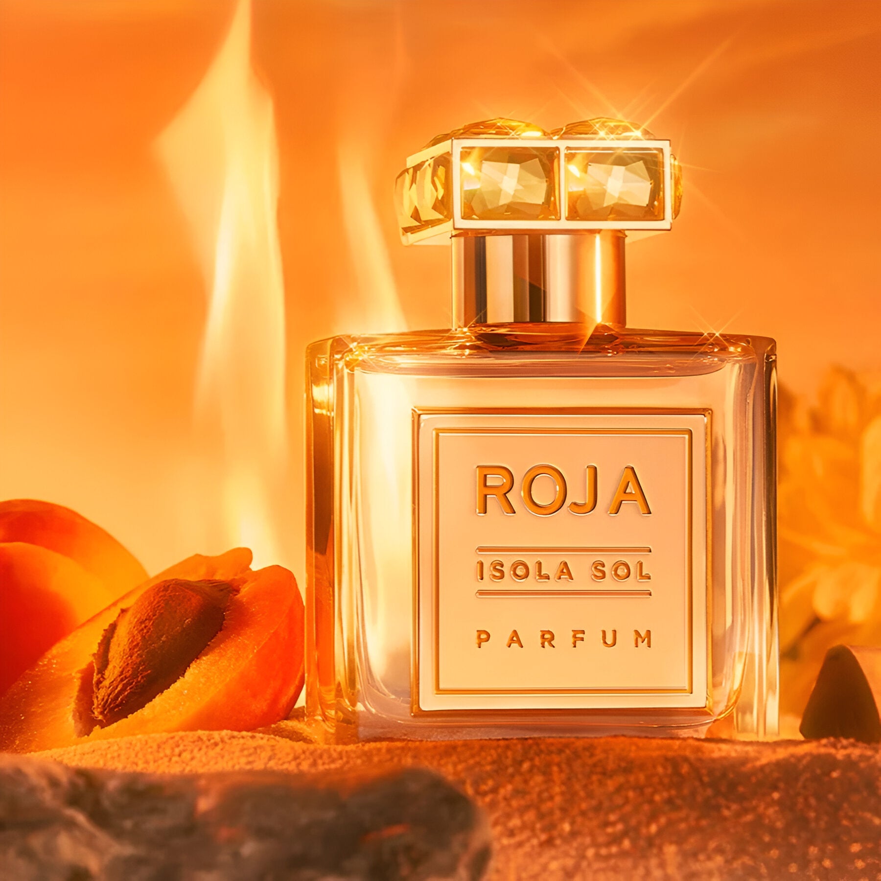 Roja Parfums Isola Sol evokes summer bliss with a floral-fruity scent, blending coconut, sandalwood, and apricot for all.