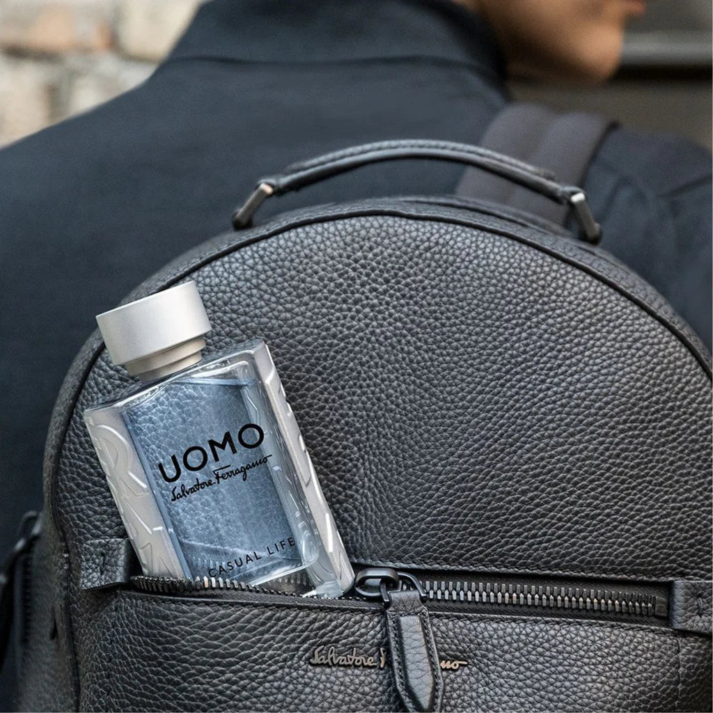 Salvatore Ferragamo Uomo Casual Life has a fresh, masculine scent with hints of lemon, coffee, and a touch of spice from cardamom.