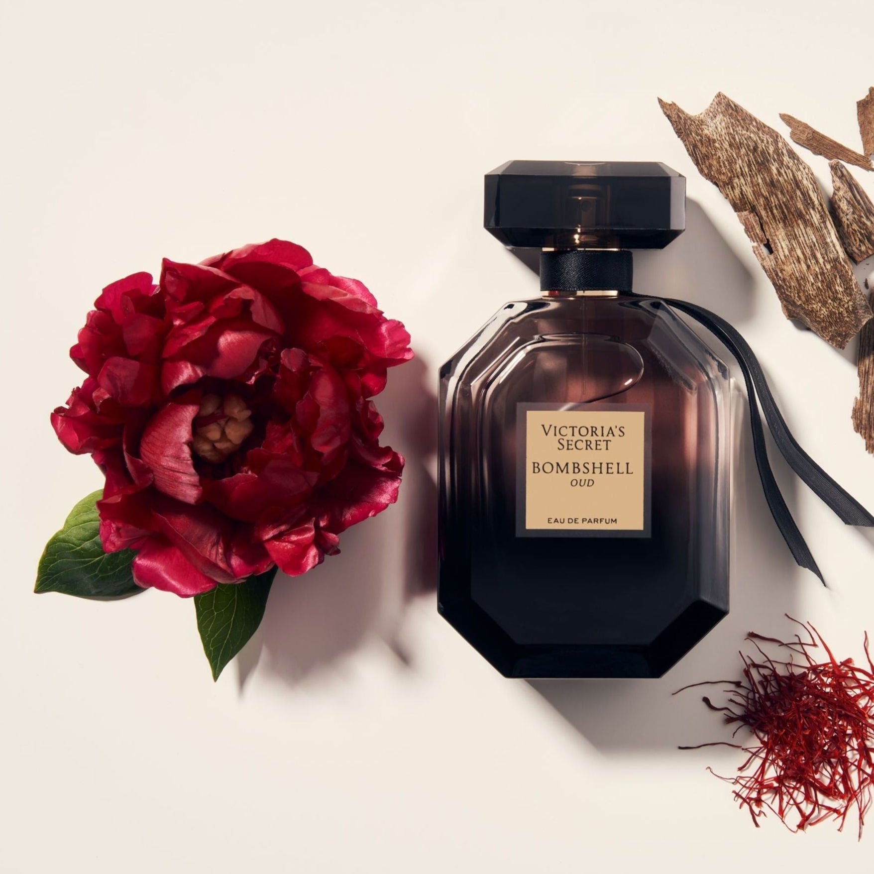 Victoria's Secret Bombshell Oud Fine Fragrance Mist smells like a luxurious blend of spicy pink saffron, soft peony, and warm exotic woods, creating an enchanting scent that's perfect for any occasion.
