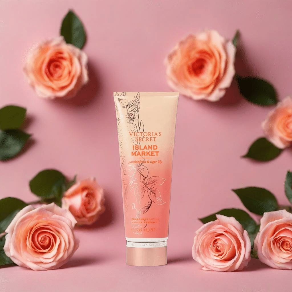 Experience the tropical allure of Victoria's Secret Island Market Lotion, launched in 2023, with floral fruity notes of starfruit and citrus for nourished, scented skin.