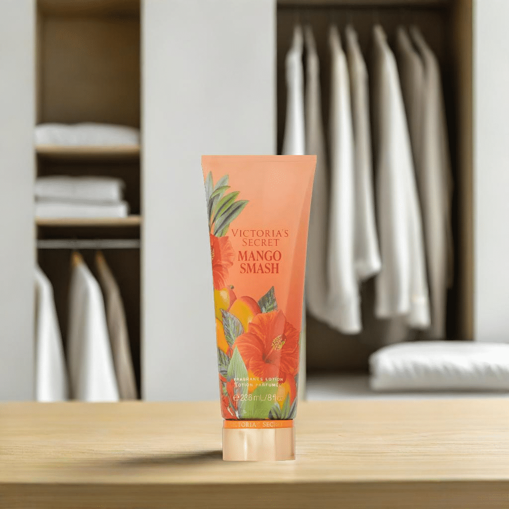 Indulge in the tropical bliss of Victoria's Secret Mango Smash Lotion, with juicy mango and pineapple notes, leaving your skin soft, hydrated, and paradise-scented.