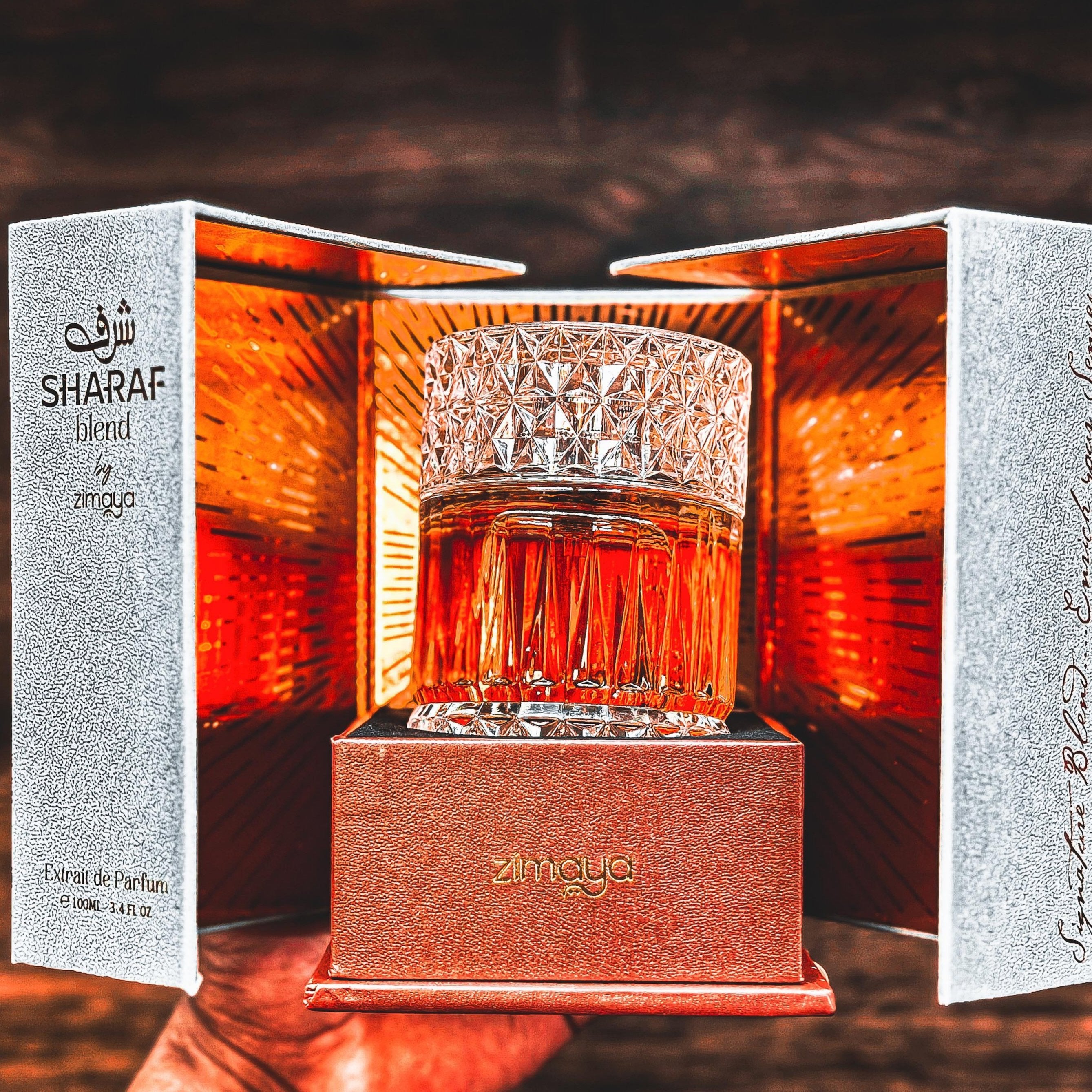 Step into a world of enchanting scents with Sharaf Blend, a signature fragrance by Zimaya.